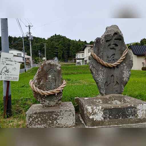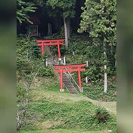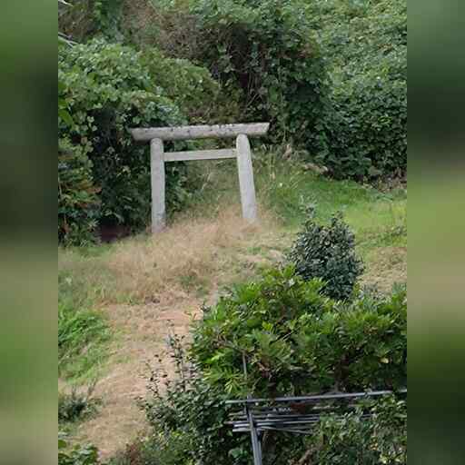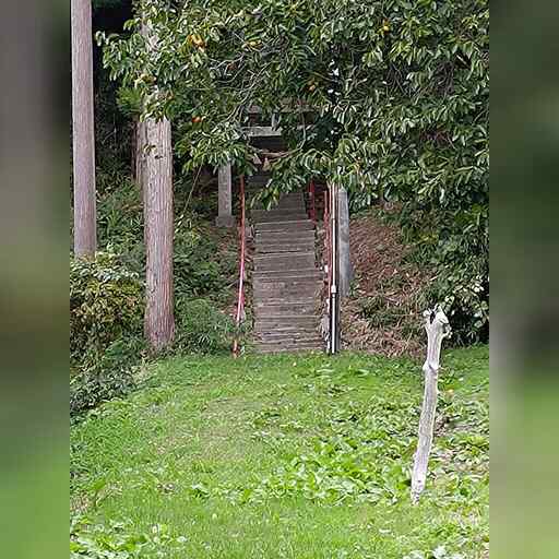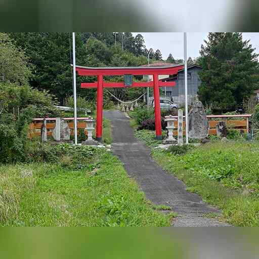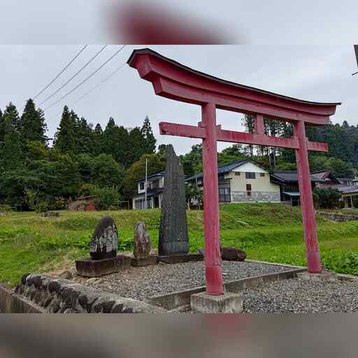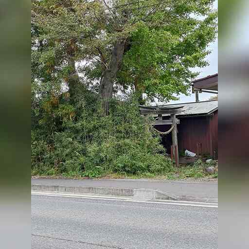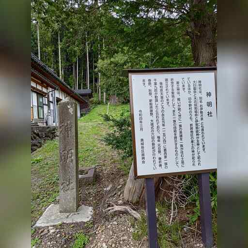 明神社の前を通ります。 旧道は途中から廃道となっています。 恐らく森の中の山神社付近を通り、さらに先でもう一度森の中を抜けるようですが、通りにくそうなので諦めました。