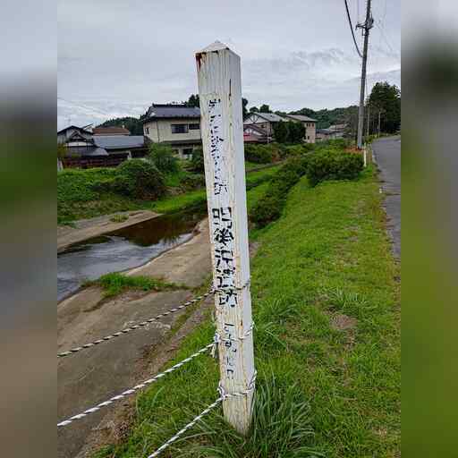 明後沢川の所で、明後沢遺跡の案内標柱があります。古瓦が出土するそうです。