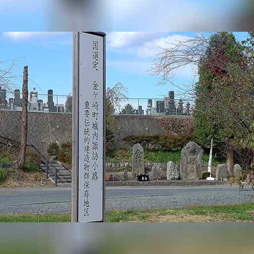 そのまま歩き続けると、「国選定 金ケ崎町城内諏訪小路 重要伝統的建造物群保存地区」という標識がありますので、寄り道します。