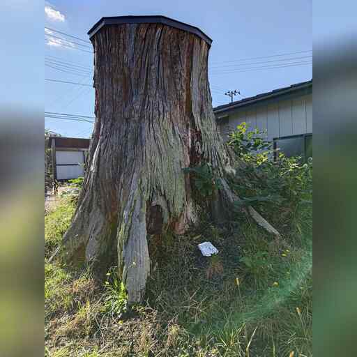 ずっと進むと一里塚跡があります。樹齢400年の杉があったのですが、今は切株だけです。