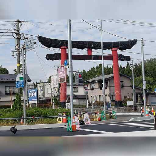 三菱製紙の前を通ります。赤鳥居のあるところで、北上市に入ります。