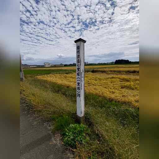 すると、田んぼの中に一里塚跡の標柱が建っています。