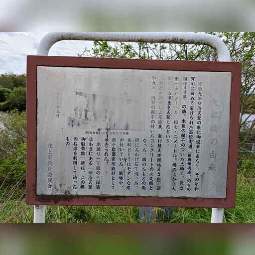 橋の北詰には、九年橋の由来の案内板が建っています。