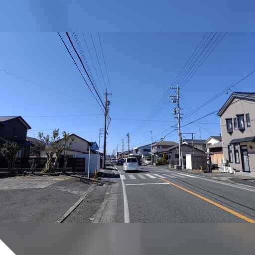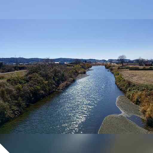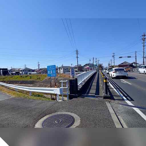 二瀬川の交差点を南に曲がり、逆川を渡ります。 次の分岐で細い方の道に入ります。