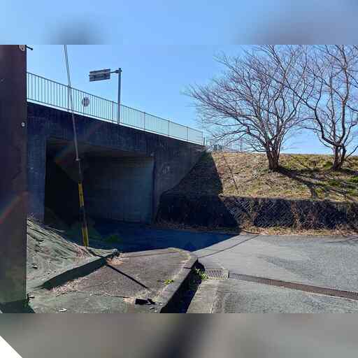 天橋があり、袋井宿を抜けます。 すぐにわき道に入ります。 2回目歩きではこの辺りを日の区切りとしました。