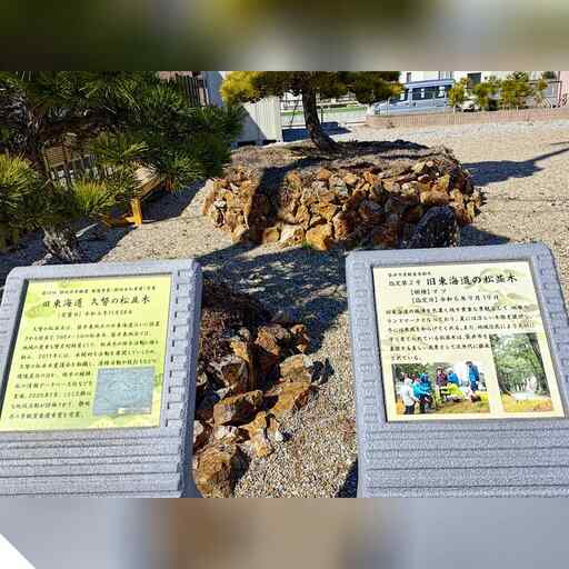 小学校の前に、久津部一里塚跡があります。 これは復元したものです。江戸まであと60里です。 近くの松の木公園にも一里塚モニュメントがあります。