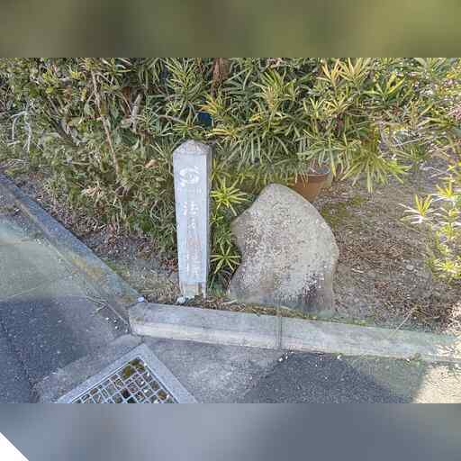 見付宿の姫街道との辻より歩き始めました。 西坂の梅塚があります。 地面には小路のプレートがあちこちに埋め込まれています。