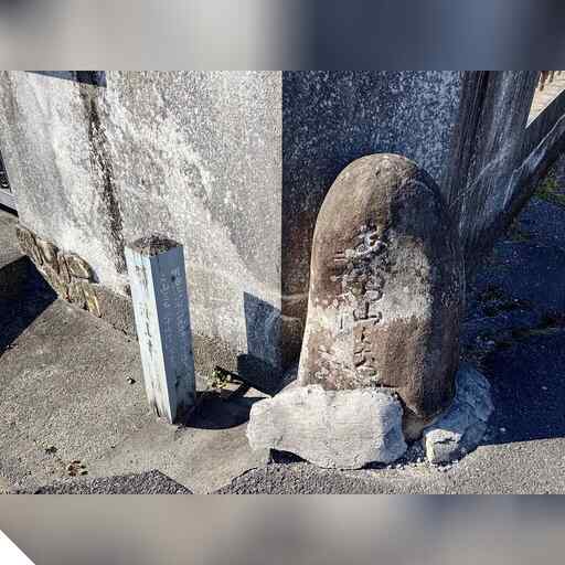 村松・宇刈道標と八幡社道標が建っています。 この北には油山道標と用行義塾の案内板が建っています。 秋葉山常夜燈があります。