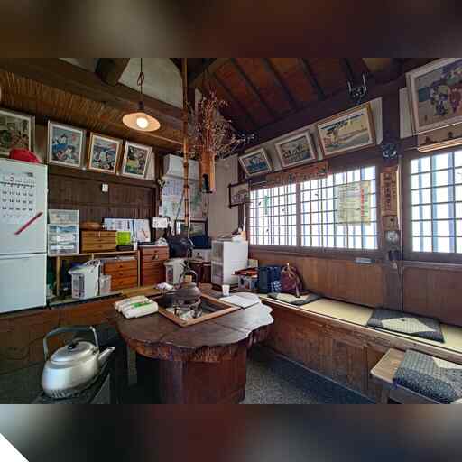 新屋の秋葉山常夜燈があります。木造屋形となっています。 県道に一瞬接触します。