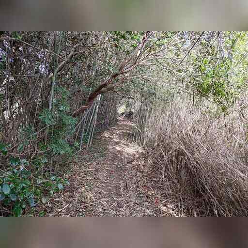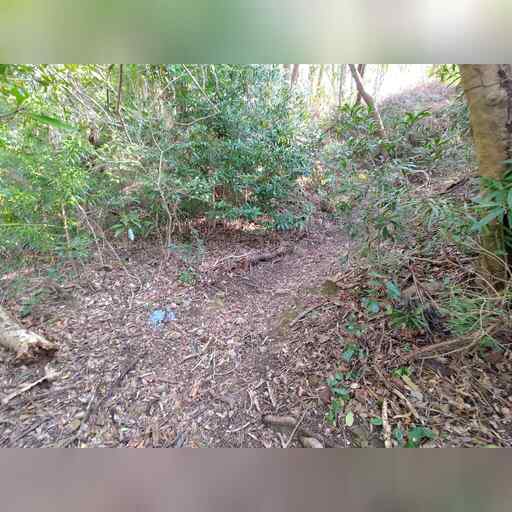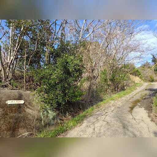元の道を横断します。 すると、1~3枚目のように進んで6枚目に繋がり、これはガイド地図に基づくのですが、 ここに写っている標柱は、ルートが別であることを示しています。 これに基づく場合、4~6枚目のようになります。