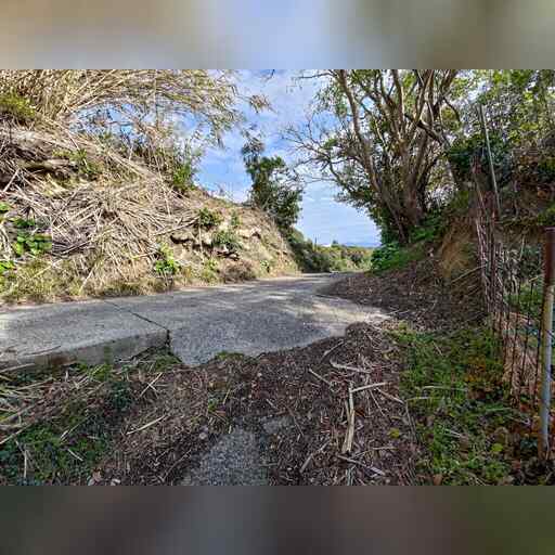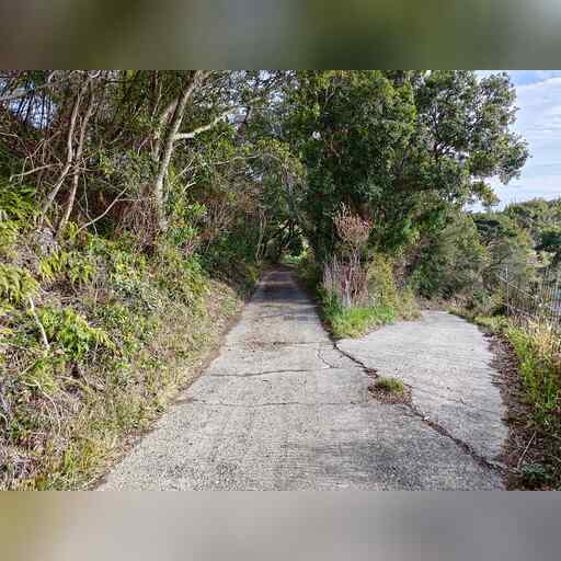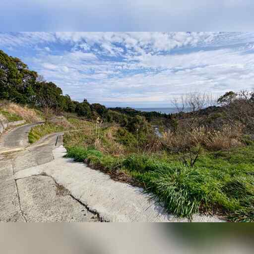 岩代駅から開始します。そのまま進み、線路から離れて坂道を登っていきます。 どうも昔は海岸沿いを進んでいたようですが、現在は通れないようです。