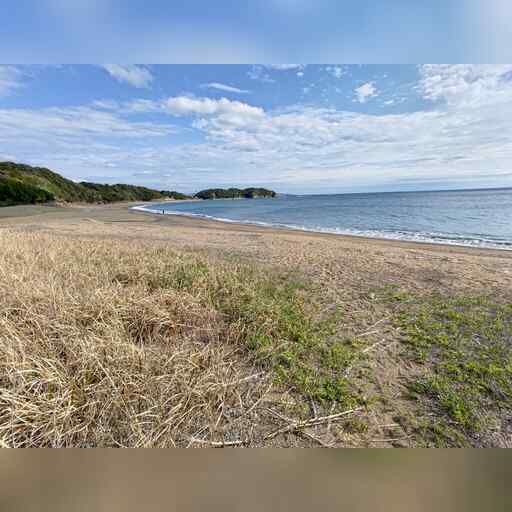 まっすぐ海岸の方に下っていきます。JR線を潜るとそこは海です。 明瞭な道は見えませんが、浜辺を進みます。 この海岸はアカウミガメの産卵地として有名です。