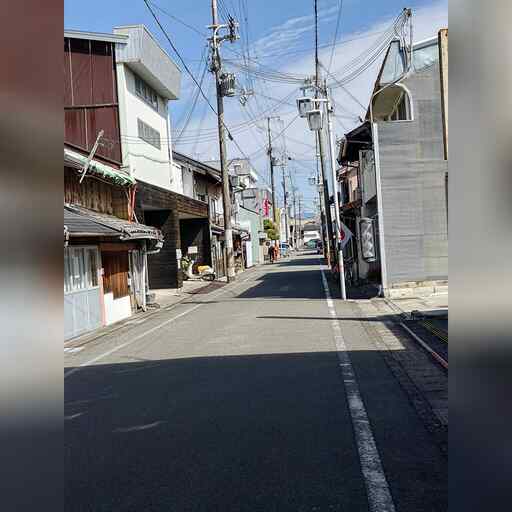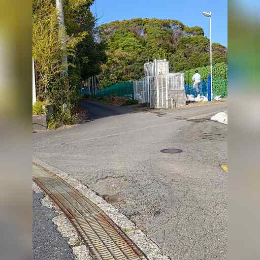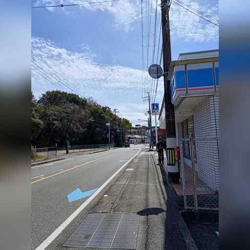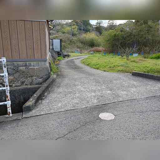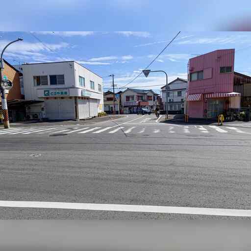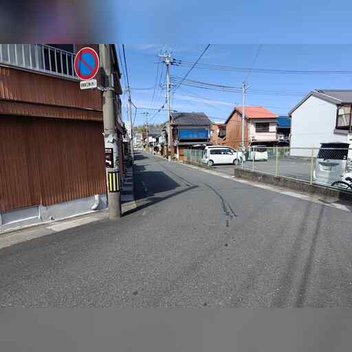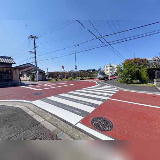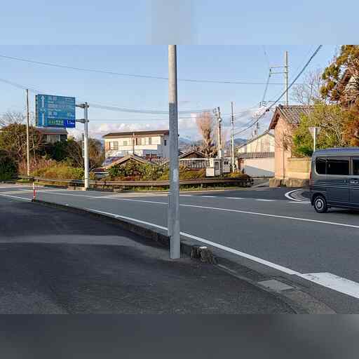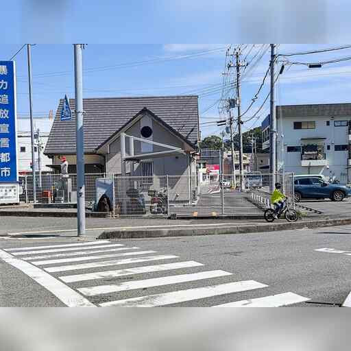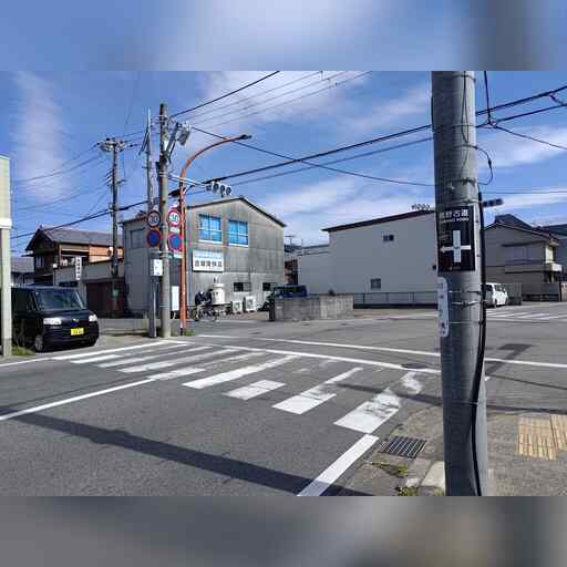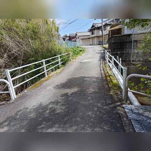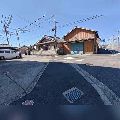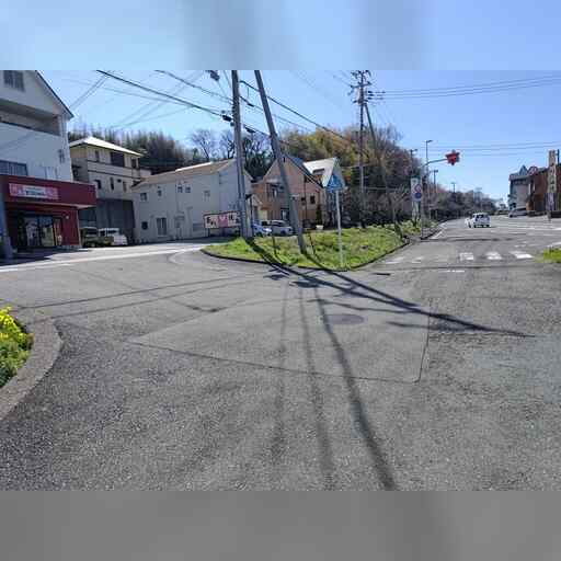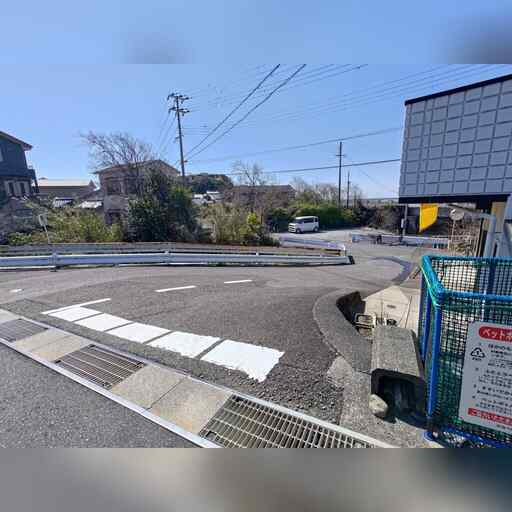 西に進み、高校を越えたところで南に曲がった後、すぐに西に曲がります。