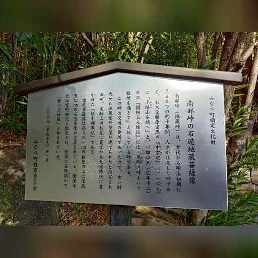 一般道に入り、しばらく進んでから細い道に入ります。 南部峠の石造地蔵菩薩像があり、ここで曲がります。室町時代とのことです。