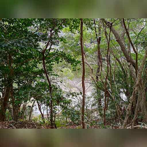 林の中を進みます。南側には池が見えます。
