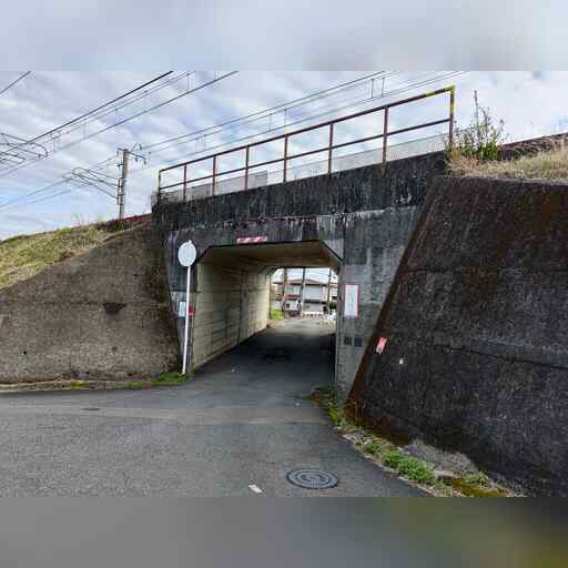 線路沿いに進み、やがて紀勢本線の下り線を潜って再び線路沿いを進みます。 線路はすぐにトンネルに入ってしまいます。