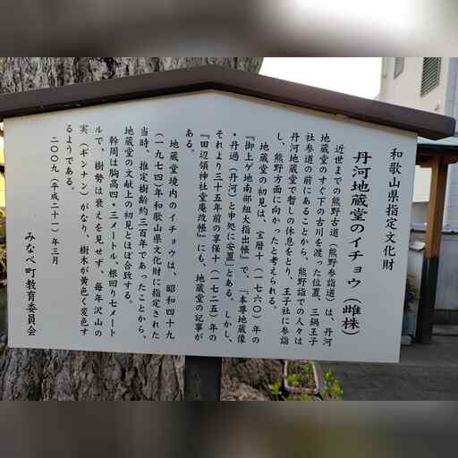 交差点から北東の細い道に進むと丹川(たんが)地蔵があり、そこには樹齢300年(1974年当時)のイチョウが生えていました。