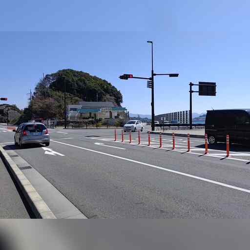 そのまま進みますが、国道の東を並走する道に入ります。 漁港の近くまで南下し、国道側の別の道に入り、すぐに西側の小道へと一時的に入ります。