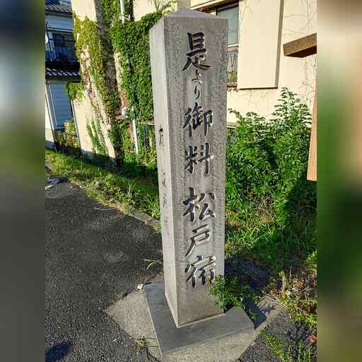 また、当時を推定して建てられた、「是より御料松戸宿」の標柱があります。