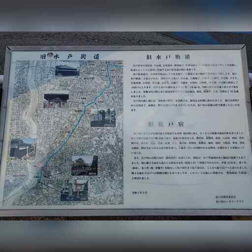 寺院の前を通ります。旧水戸街道の案内板があります。